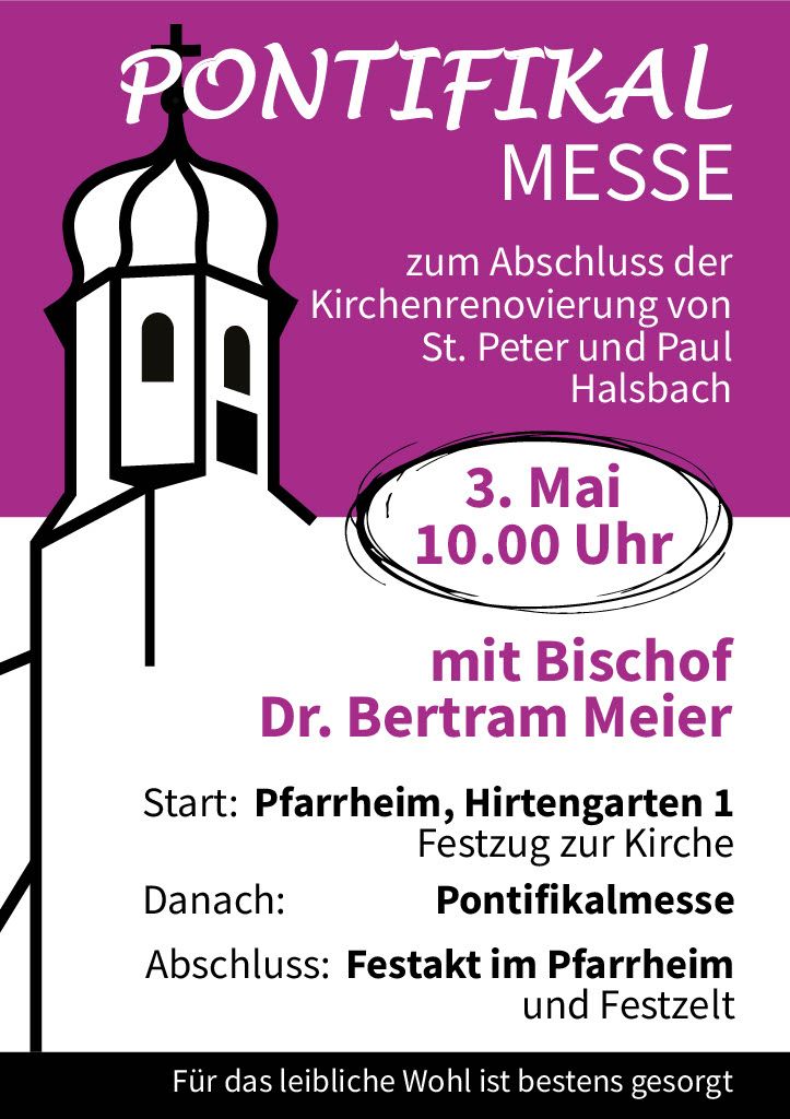 | Wiedereröffnung der St. Peter und Paul Kirche mit Bischof Bertram Meier, für die Verstorbenen der Pfarrei Halsbach |